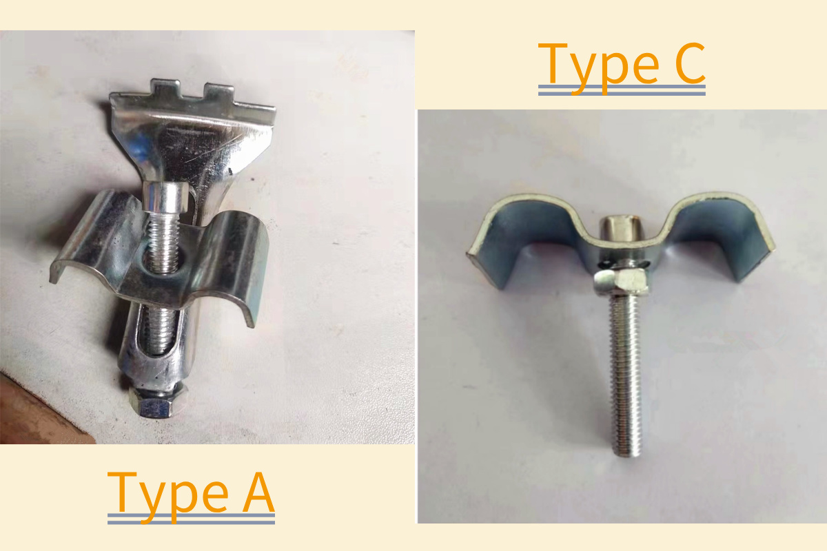 Common types include saddle clips, G-clips, J-bolts, and weld lugs.