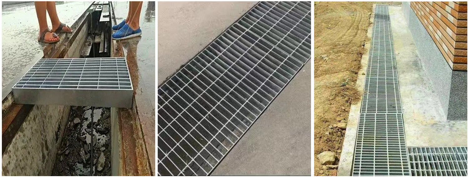 They cover drainage channels while allowing water flow.